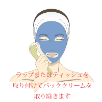 クリーナーにパットを当て、食品包装用ラップもしくはティッシュをヘッドに巻きます。しっかり手に持ち、肌から0.5~1cm離してパッククリームを取り除きます。さらに、そのままゆっくりクリーナーを肌に押し当てるようにして、パッククリームが肌に残らないように除去します。除去した後は、食品包装用ラップもしくはティッシュをヘッドからゆっくり取り外し、不燃ゴミとして処理をしてください。